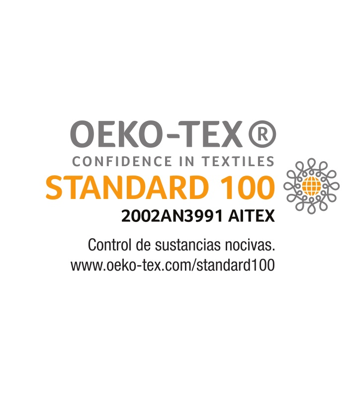 Déhoussable double housse fermeture à glissière, enveloppe intérieure 50 % coton 50 % polyester, hauteur 13 cm. Normes de qualité Oeko-tex par laboratoire AITEX. Fabrique en Espagne